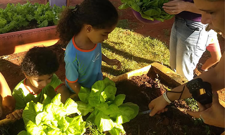O contato com a terra no preparo dos canteiros e a descoberta de inúmeras formas de vida que ali existem, o encanto com as sementes/mudas que brotam como mágica, a prática diária do cuidado promovem oportunidades riquíssimas de aprendizado para nossos pequenos.
